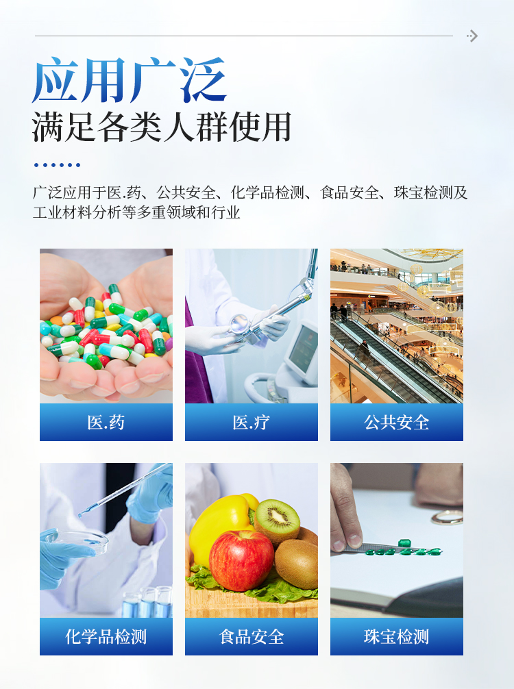 适用于现场快速检测,广泛应用于医药、公共安全、化学品检测、食品安全、珠宝检测及工业材料分析等多重领域和行业。