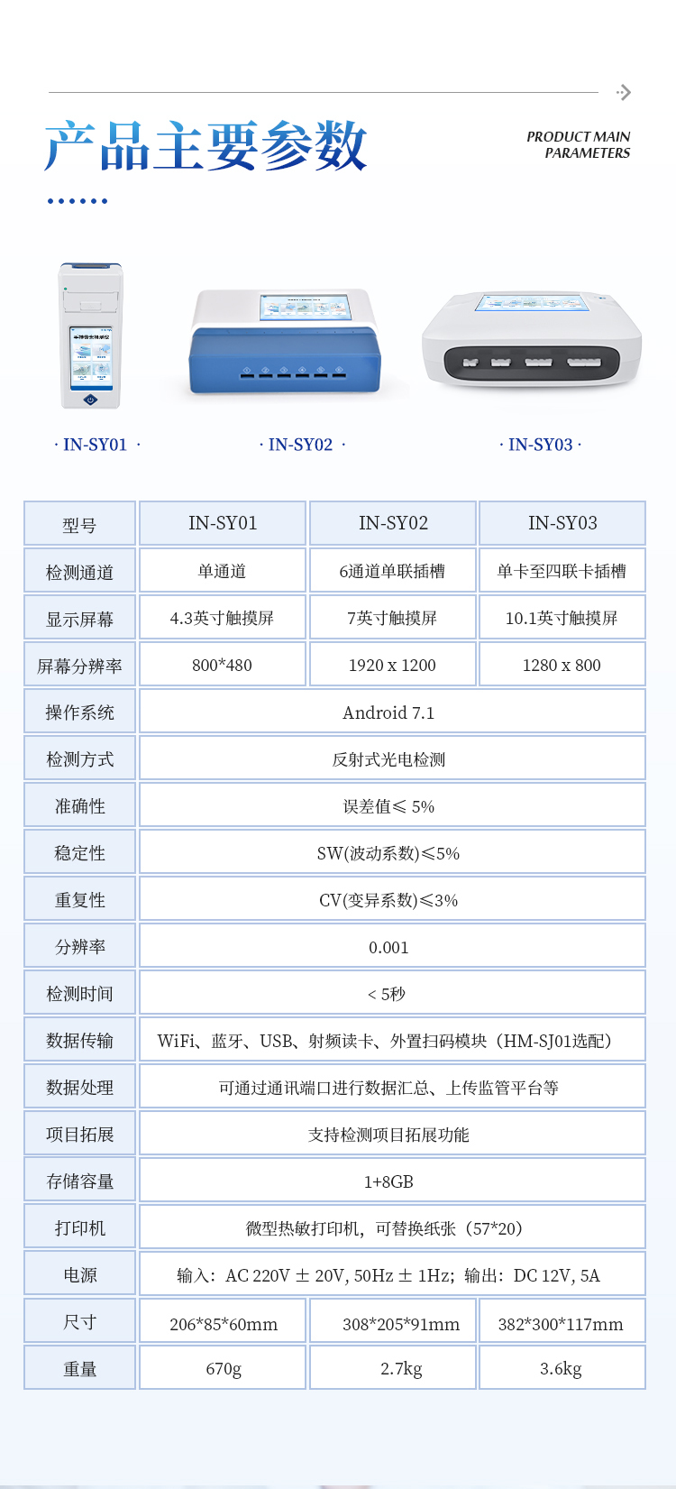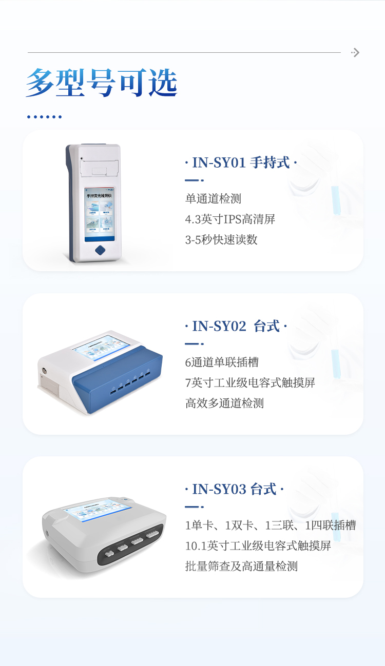 9、检测时间:< 5秒 (单卡及多联卡);可对样本进行胶体金定性/半定量检测。