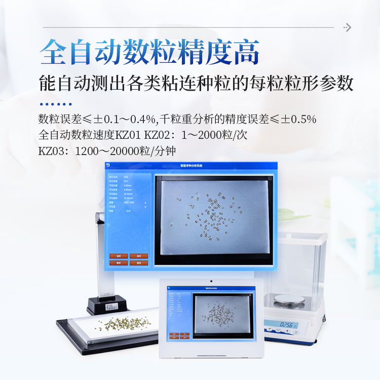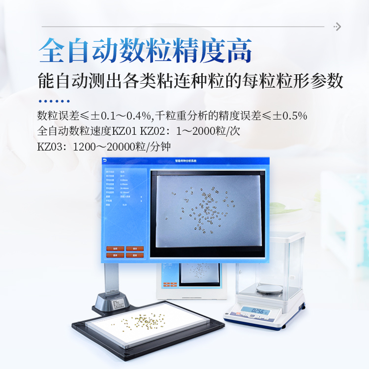 3、全自动数粒速度1200~20000粒/分钟,数粒误差≤±0.1~0.4%,极少监视修正即达100%正确。全自动千粒重分析的精度误差≤±0.5%。对于直径较小的种粒(如油菜籽、蔬菜籽),单批次考种数量在1~10000粒。